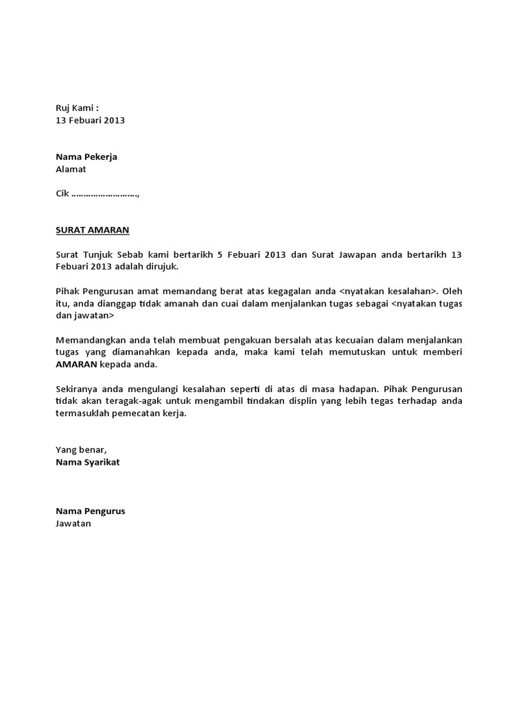 Contoh Surat Amaran Untuk Pekerja Pdf