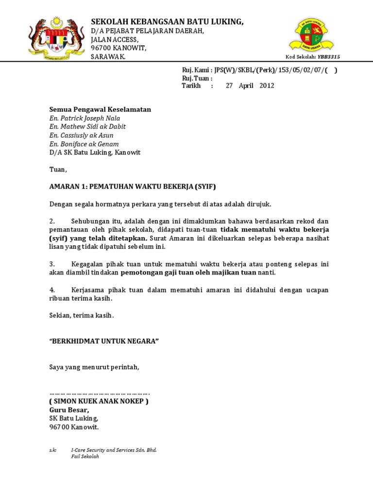 Surat Amaran Waktu Bekerja Jaga Pdf